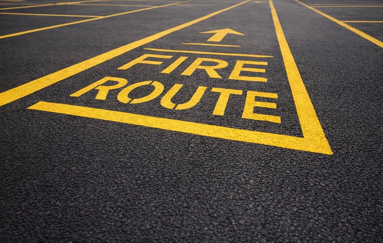 Clearly marked fire routes and safety zones that meet regulatory requirements and keep your property compliant. Bold, long-lasting markings ensure visibility and safety at all times.